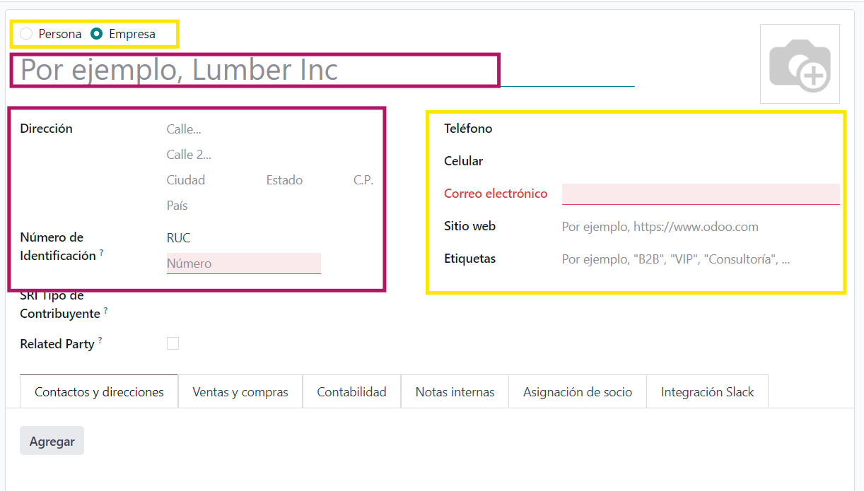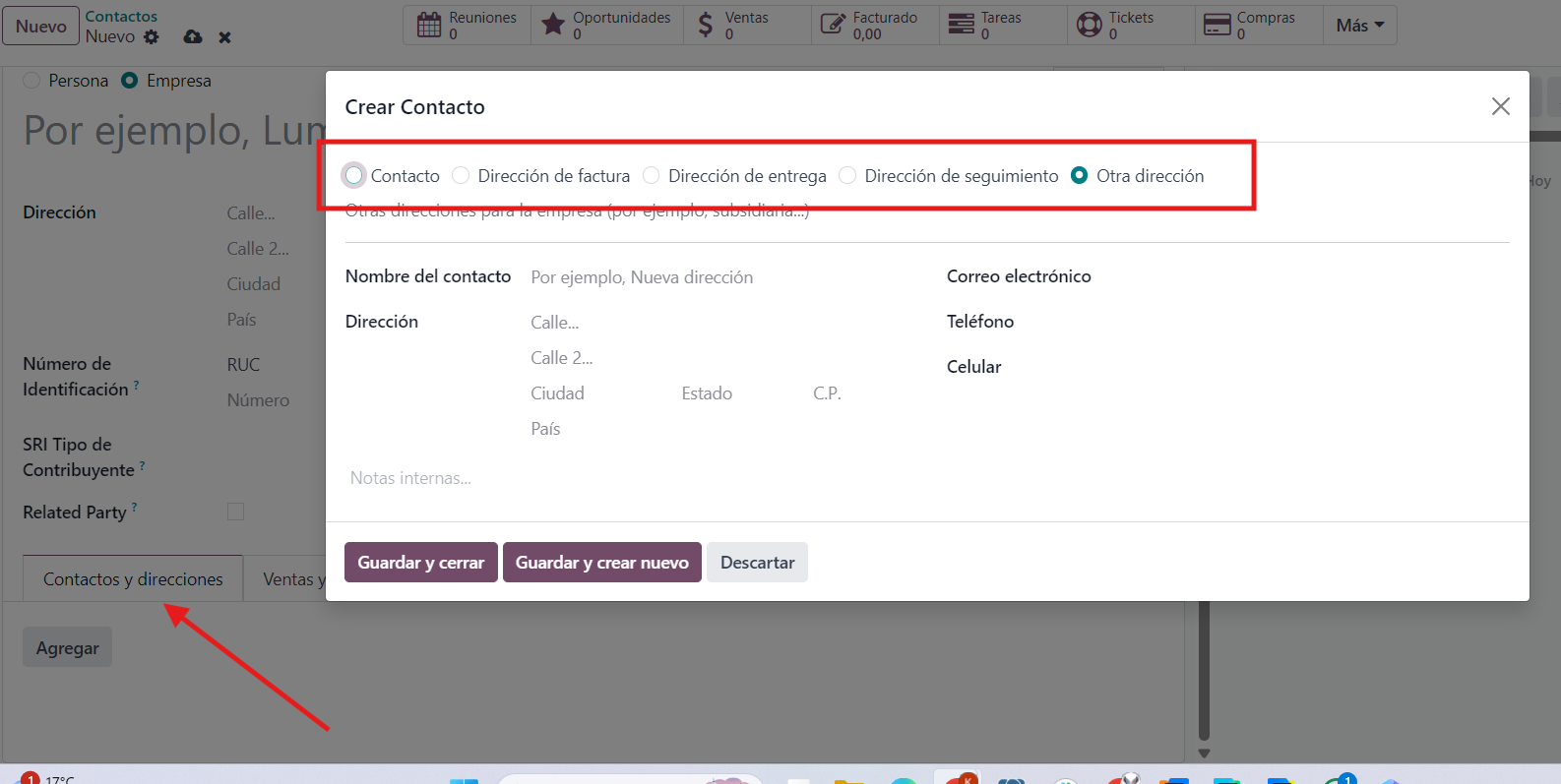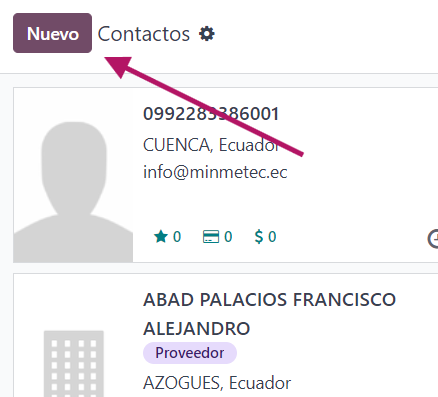 - Recuerde cambiar el tipo de contacto de Empresa a Persona.