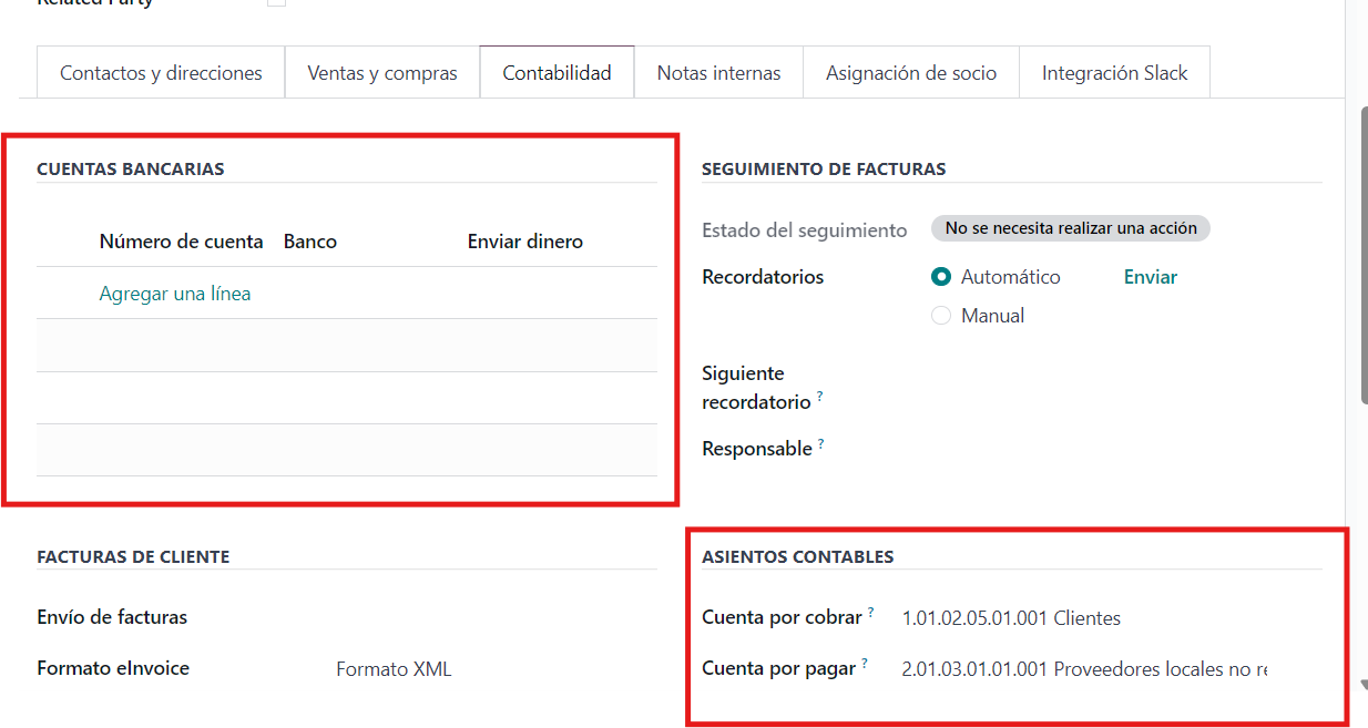 - Cuenta Bancaria: debemos agregar una linea y nos mostrara que información se necesita.