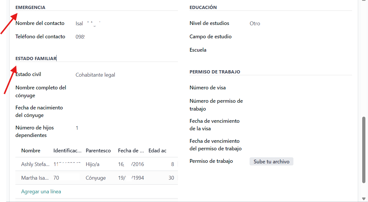 - Datos de emergencia: Esta información es indispensable en caso de ocurrir una calamidad dentro del área de trabajo.