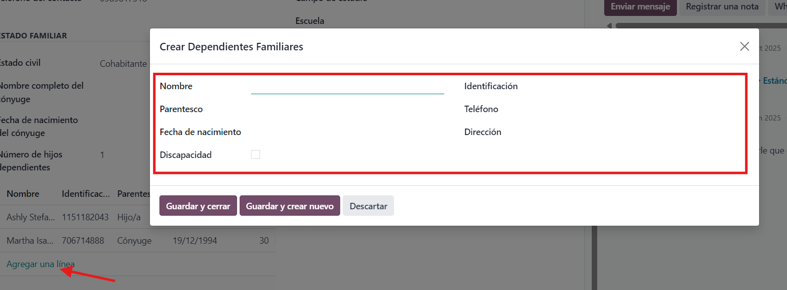 La relevancia de estos datos dependerá del contacto que se esté creando. Dentro del proceso de creación de empleados, no es necesario completar esta información a menos que sea estrictamente requerido.